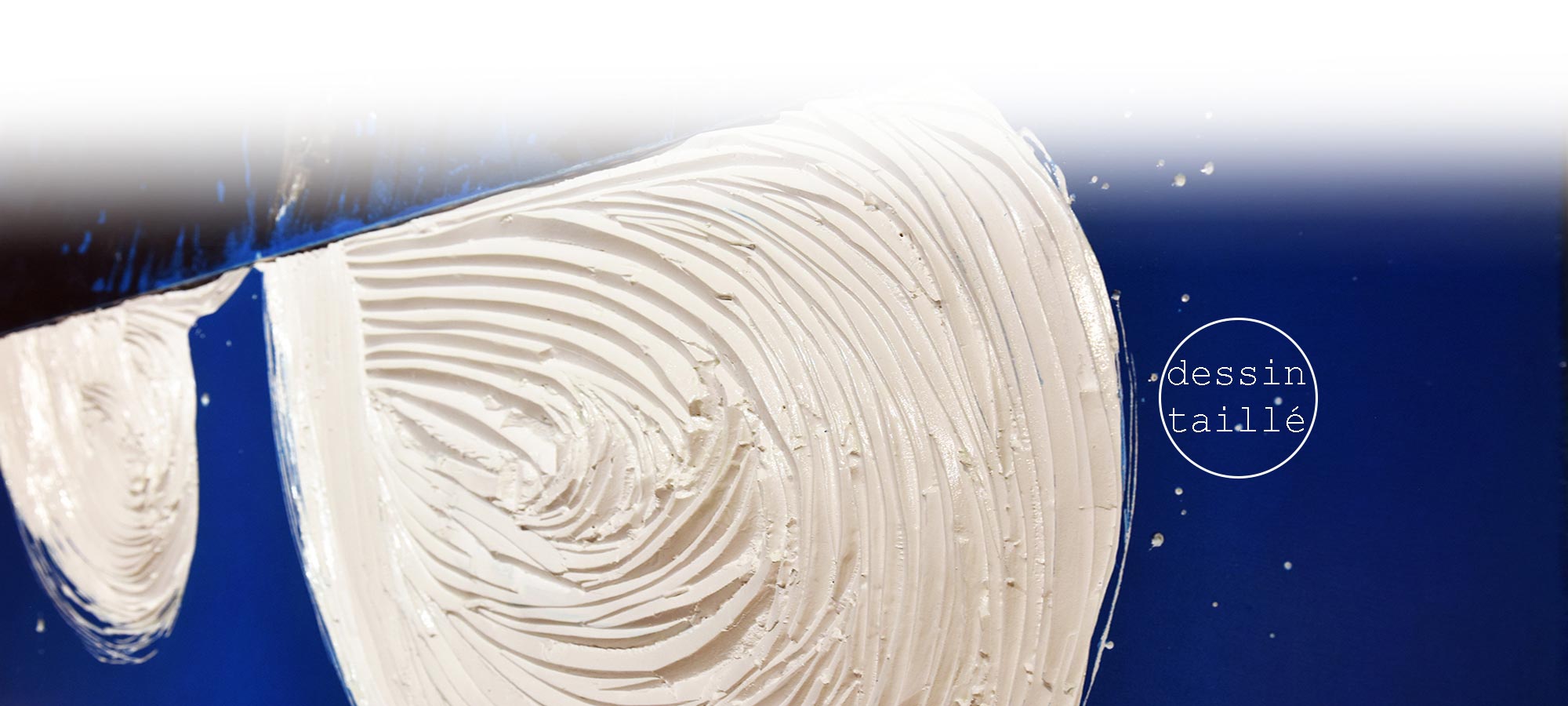 Le polystyrène est un matériau que j’utilise beaucoup. Il peut me servir de matrice imprimable comme de volume sculpté, inséré dans le tableau. Incisant la matière au scalpel en suivant un dessin réalisé au préalable, un peu à la manière de la taille d’épargne, j’ai appelé ça du dessin taillé.